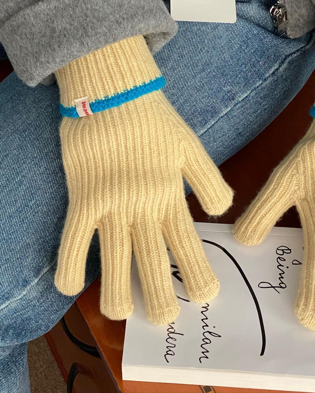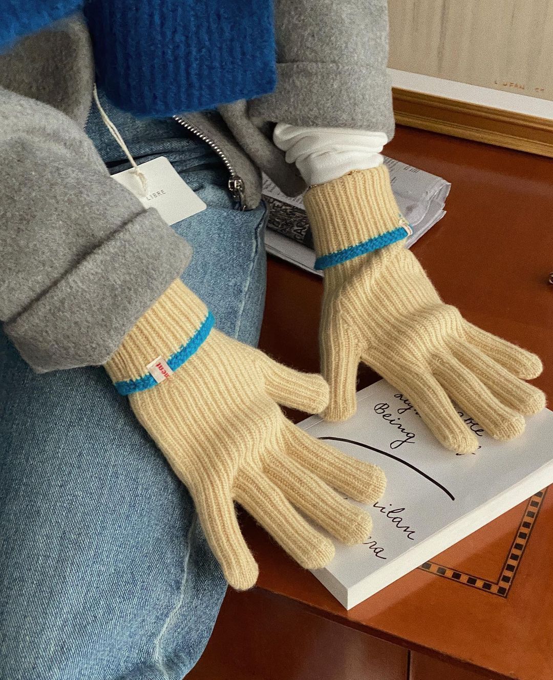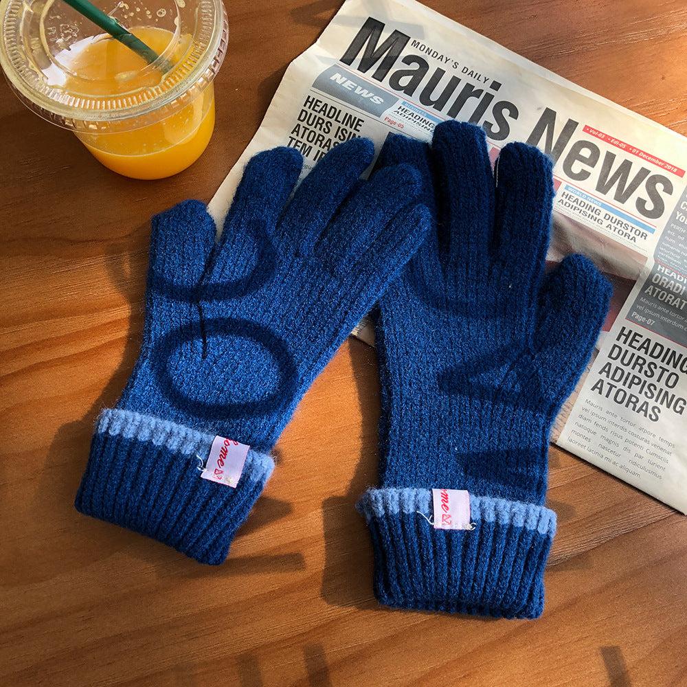 Knitted Contrast Color Wool Five-finger Gloves