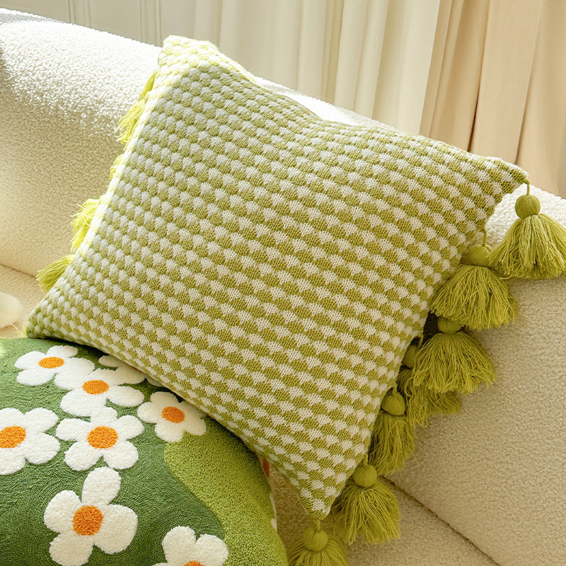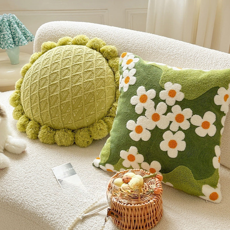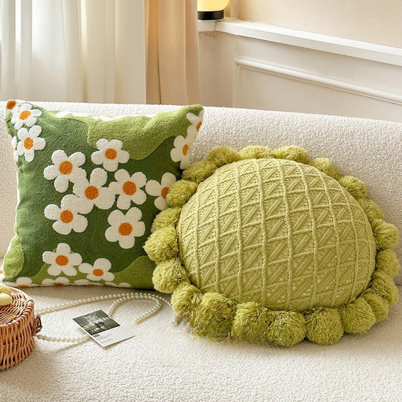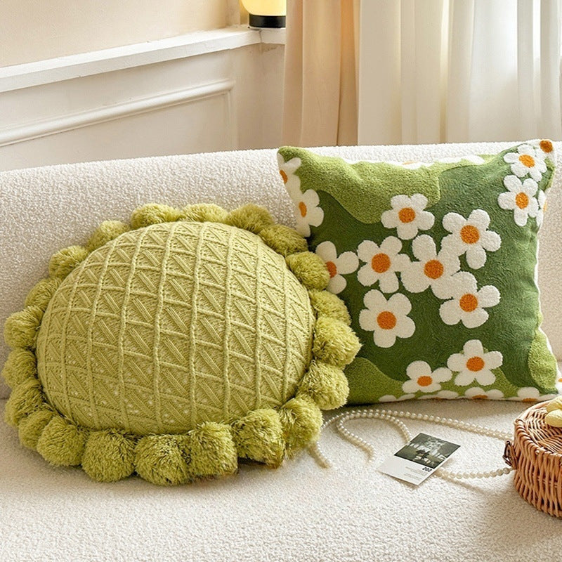 Color: full embroidery moss green/45 * 45cm, Green futon/50 * 50cm, pineapple lattice green side tassel/45 * 45cm, green ball square pillow/with ball 50 * 50cm