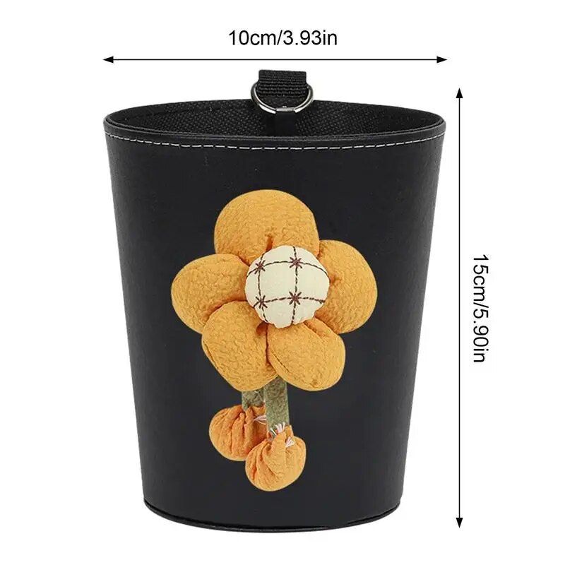Our Car Trash Can is expertly crafted from premium leather, ensuring durability and a touch of luxury. The pressing-type lid offers a sleek look and effortless operation. Measuring 10*15CM, it is compact yet spacious enough to hold all forms of car waste. With its easy-to-mount design, you can attach it to air vents, backseats, or anywhere within reach for quick access.