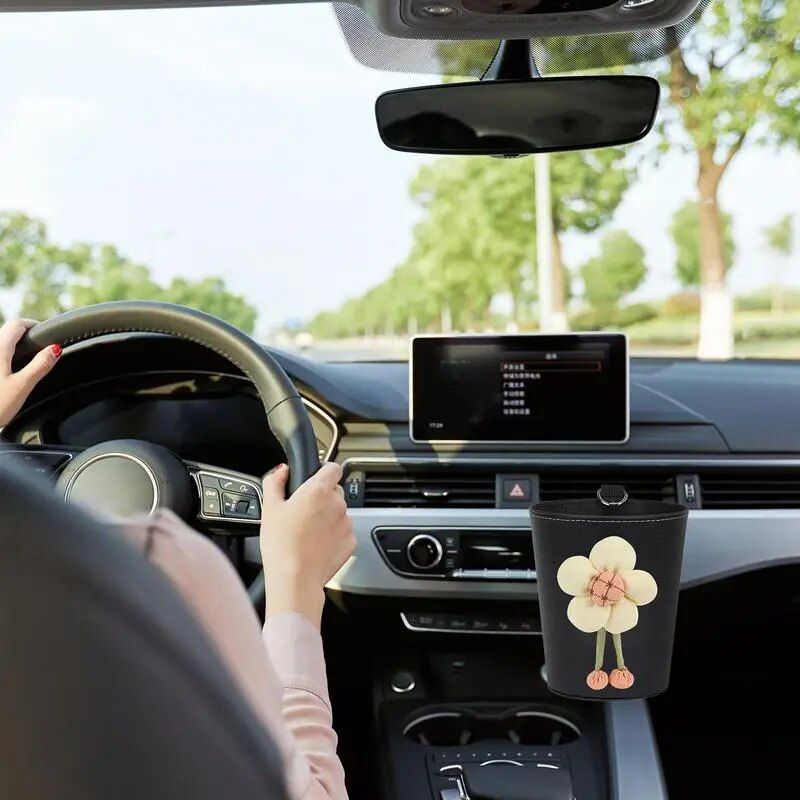 Luxury Leather Car Trash Can – Portable Garbage Bin for Auto Interiors