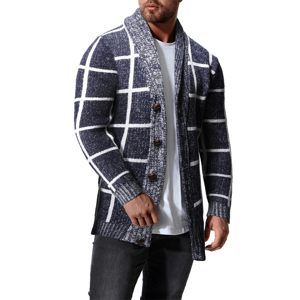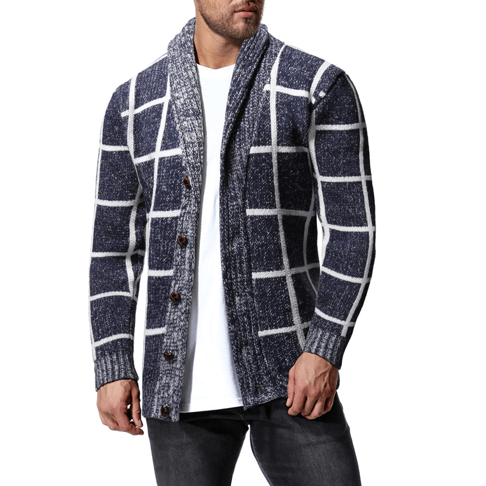 Men'S Winter Color Matching Plaid Cardigan Sweater