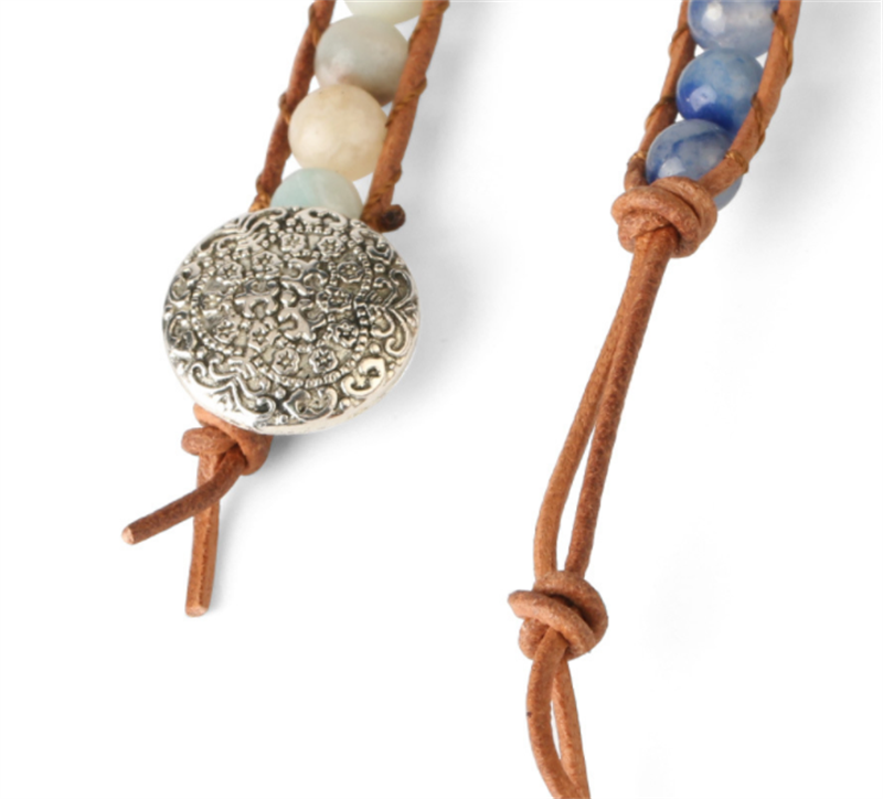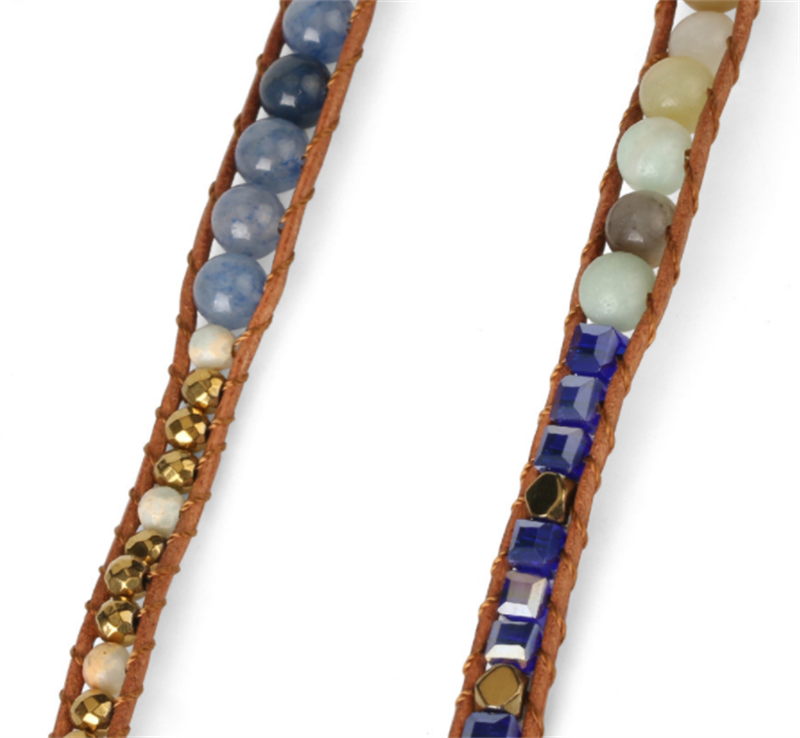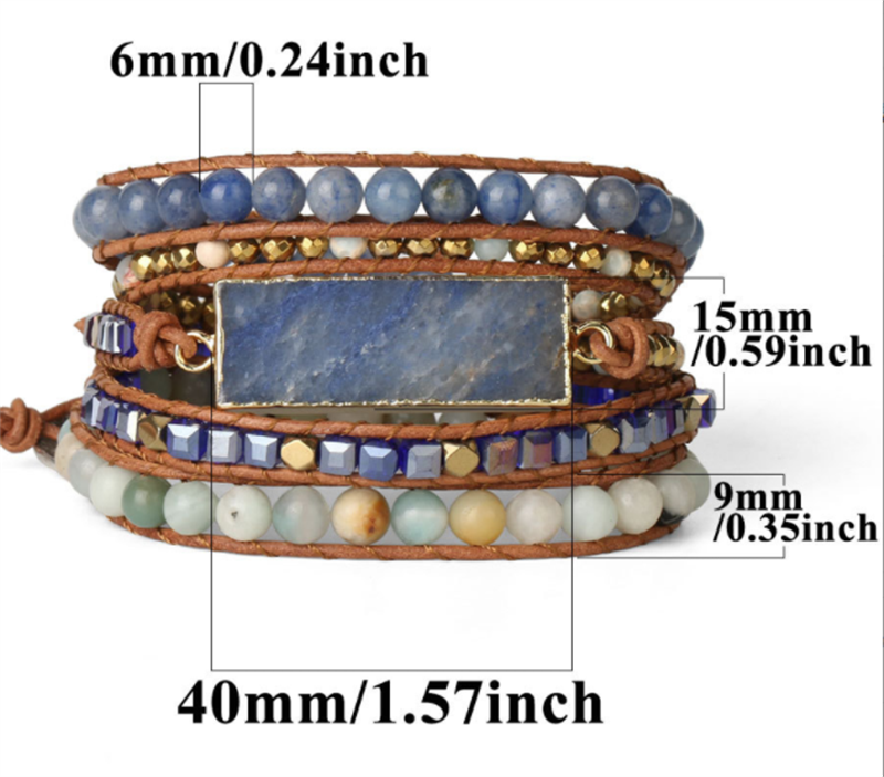 Multilayer Leather Wrap Crystal Blue Aventurine Bracelet