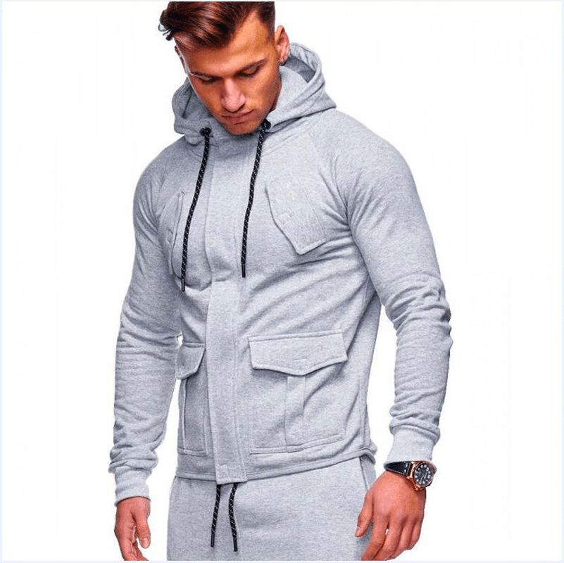 New Concealed Access Control Zipper Men'S Hooded Casual Sports Suit