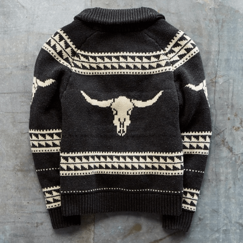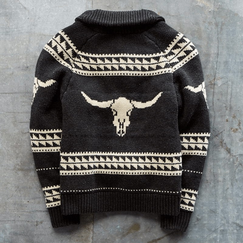 New Men'S Clothing Autumn and Winter Long-Sleeved Black Jacquard Sweater