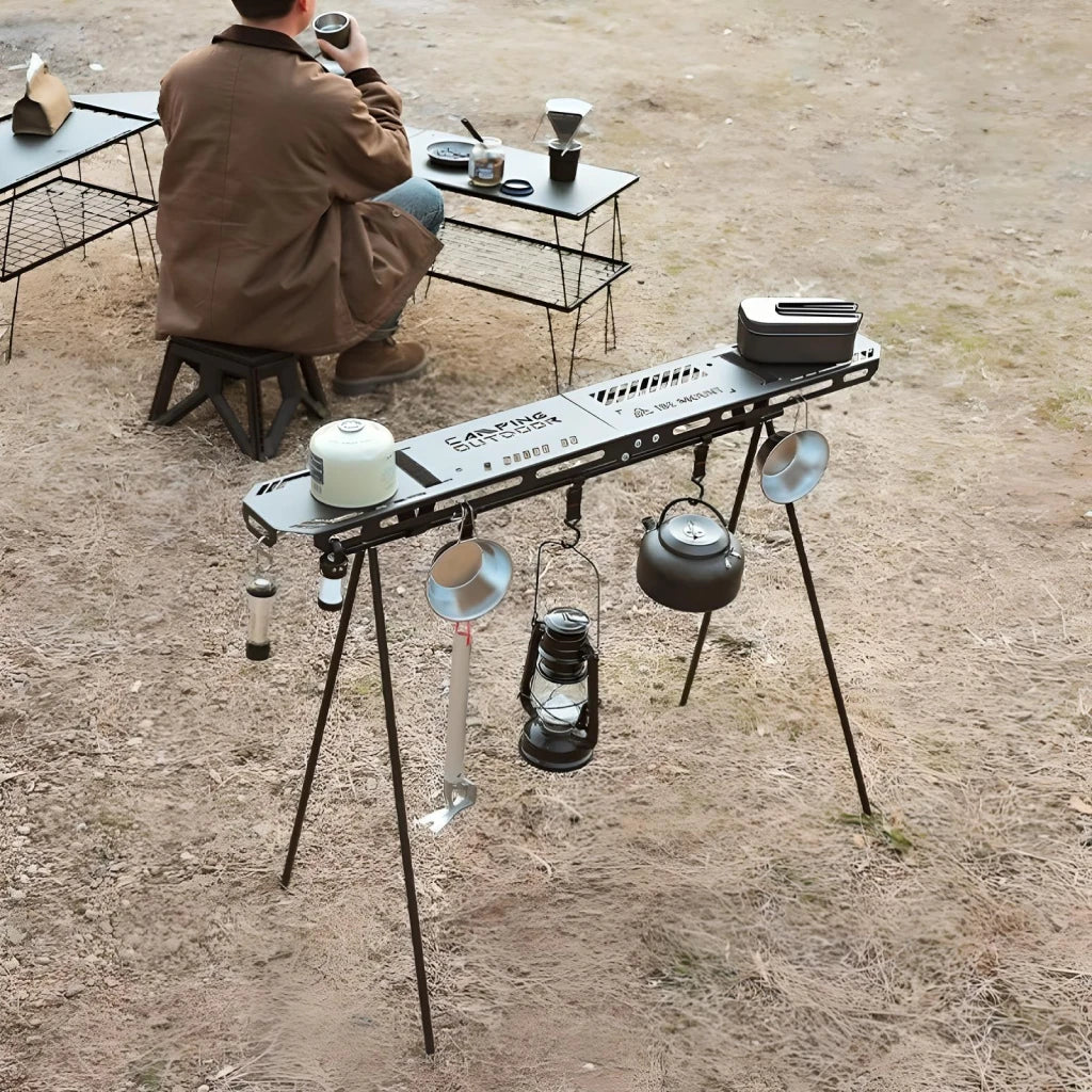 The Outdoor Triangular Storage Rack stands out due to its unique combination of durability, portability, and functionality. The iron construction ensures it can withstand the elements, while the foldable design allows for easy transport and storage. The triangular shape provides excellent stability, making it a reliable surface for your tableware, cooking tools, and other camping gear. Additionally, the included storage bag makes it even more convenient to carry and store.