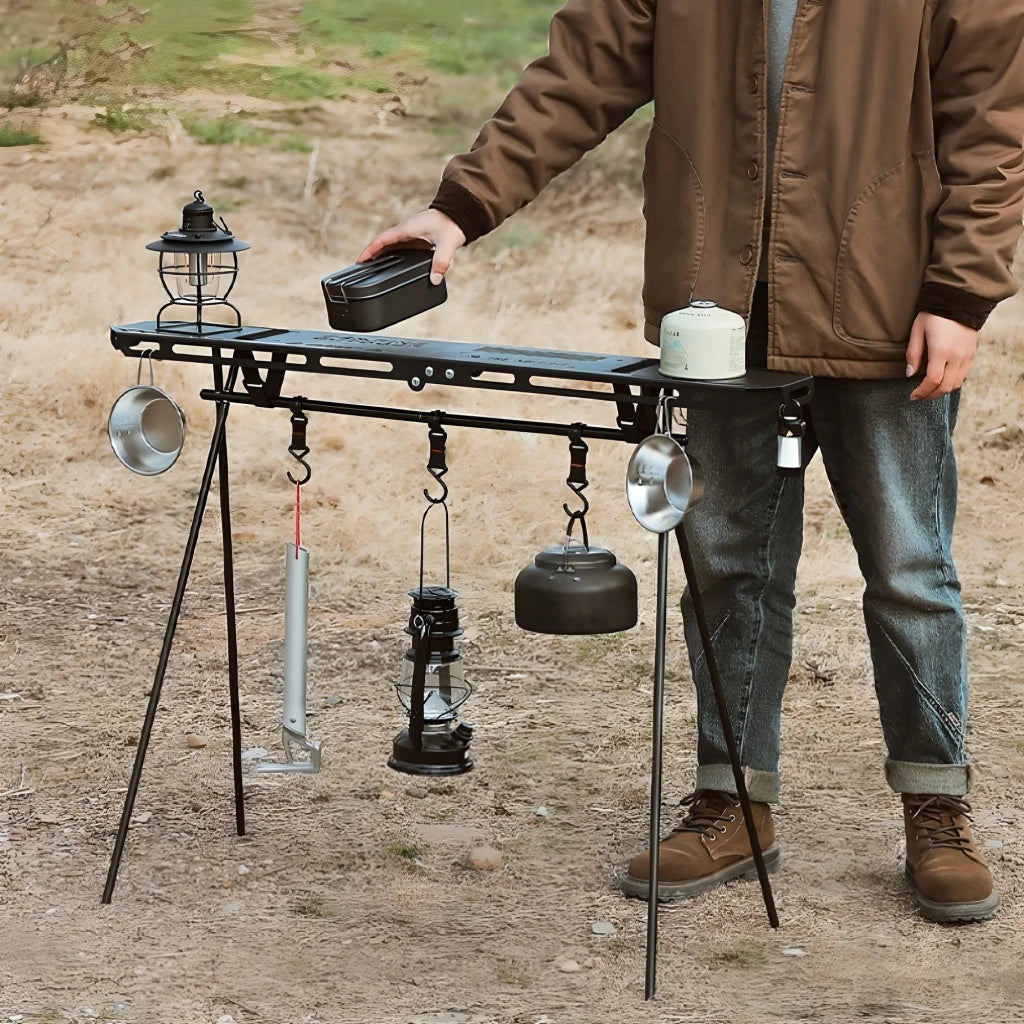This storage rack is ideal for various outdoor activities. Whether you're camping in the wilderness, enjoying a picnic in the park, or setting up a temporary kitchen at a tailgate, the Outdoor Triangular Storage Rack offers a reliable solution for organizing your essentials. Its lightweight and portable design make it perfect for travel, ensuring you can take it along on all your adventures.