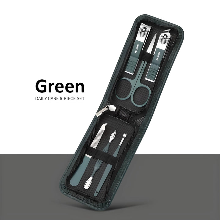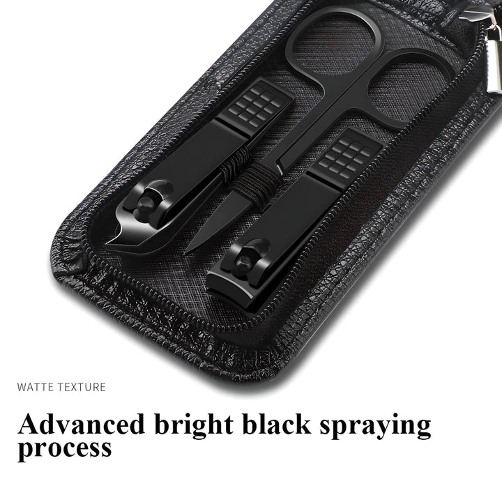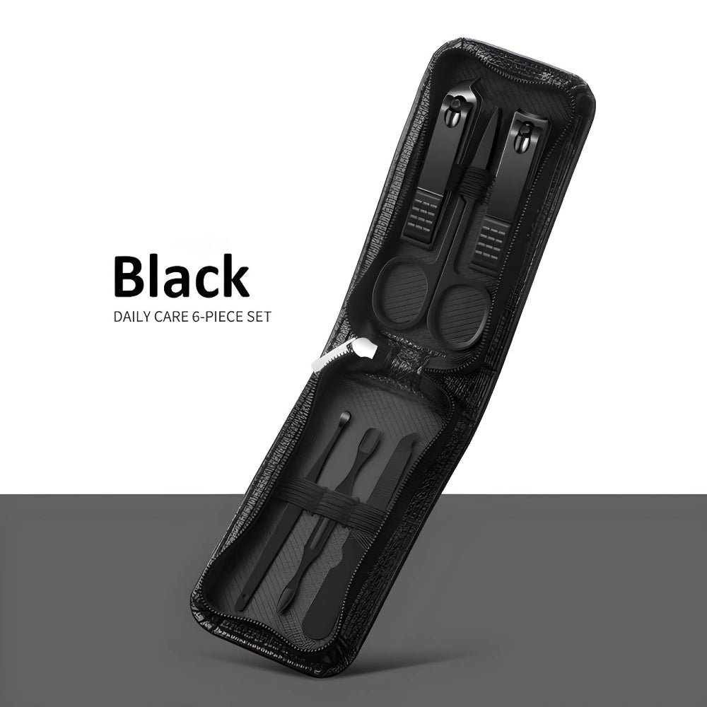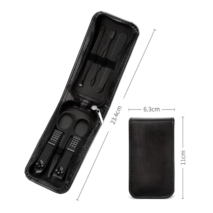 Transform your personal care regimen with our Portable Luxury Manicure & Pedicure Set. This premium 6-piece set, designed with precision and convenience in mind, is the ultimate companion for anyone who values impeccable grooming. Crafted from high-quality stainless steel, this sleek, bright black set combines elegance with durability, ensuring you always look your best, whether you're at home or on the go.