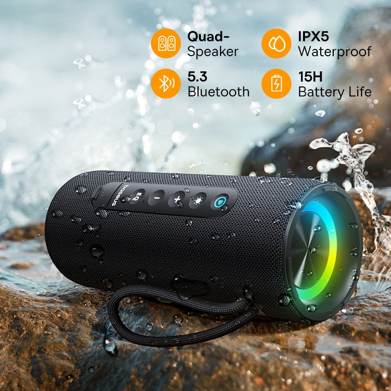 • Quad-Speaker Power: Equipped with 15W quadruple drivers, this speaker delivers powerful, dynamic sound that brings your music to life.