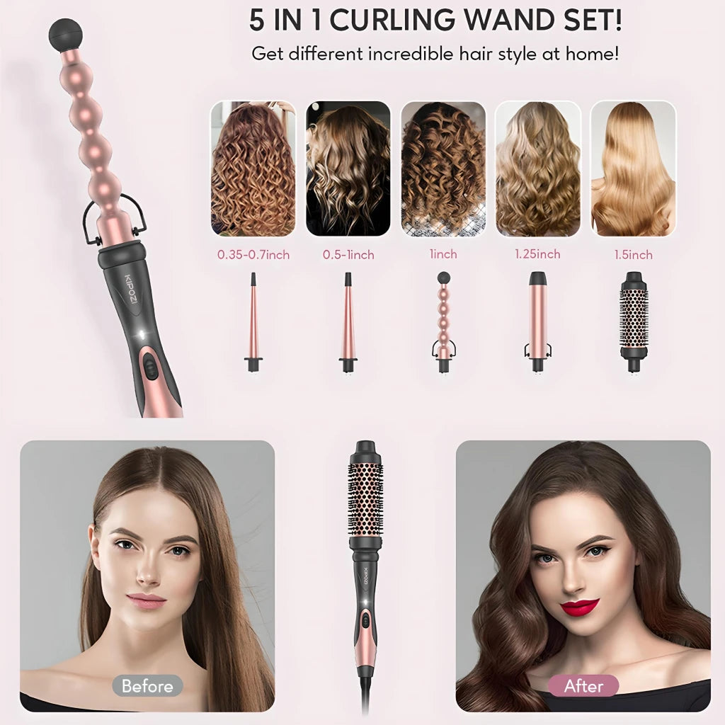 Professional 5-in-1 Curling Iron and Hot Air Brush Set