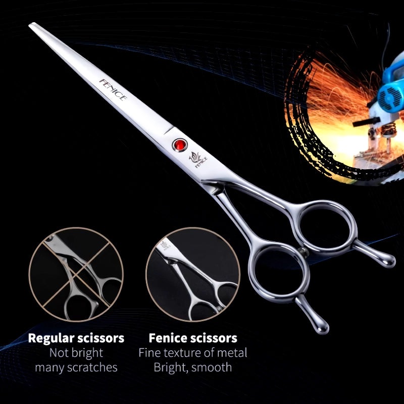 Take your pet grooming skills to the next level with our Professional Pet Grooming Scissors, available in 7.0", 7.5", and 8.0" sizes. These straight cutting shears are designed to provide precision and control, ensuring that every trim and cut looks neat and professional. Made from high-quality stainless steel, these grooming scissors offer durability and sharpness that will last through countless grooming sessions. Whether you're a professional groomer or a pet owner who loves grooming their pets at home, these shears will help you achieve flawless results. The ergonomic design makes handling easy and comfortable, reducing hand fatigue during longer grooming sessions. Perfect for use on dogs, cats, and other furry friends, these shears are the ideal tool for trimming body fur, shaping your pet’s coat, and achieving clean, straight cuts. Invest in a grooming tool that gives you the confidence to keep your pet looking fabulous.