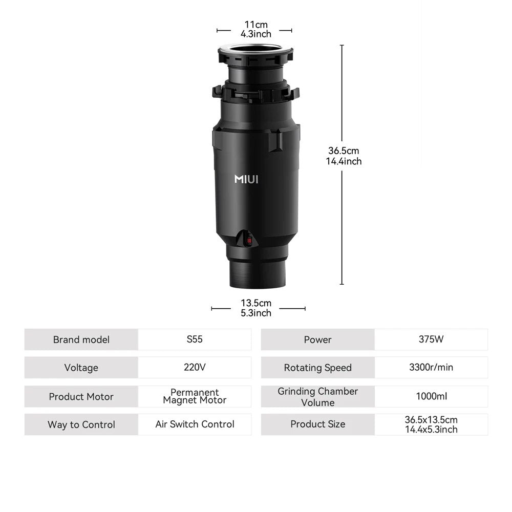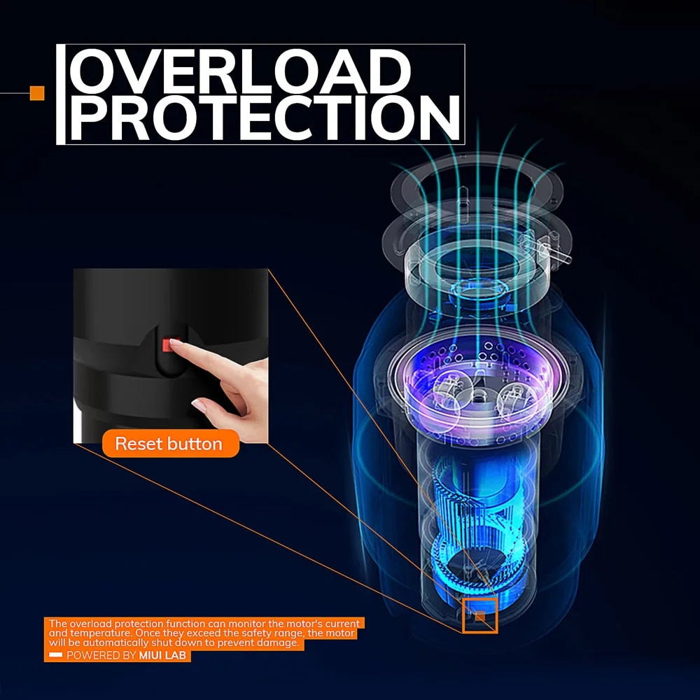 • Bladeless Grinding System: Utilizes a 360° rotating knockout mechanism for quick and safe food waste disposal.