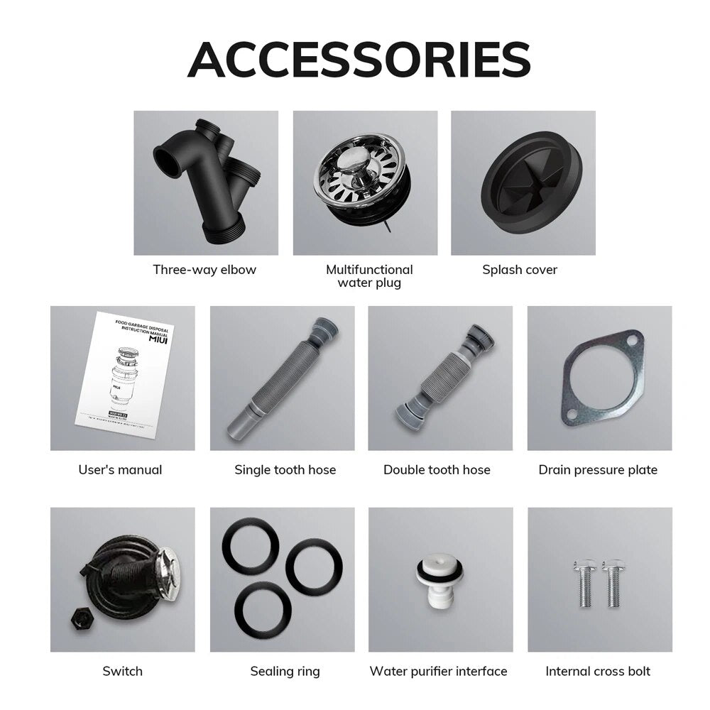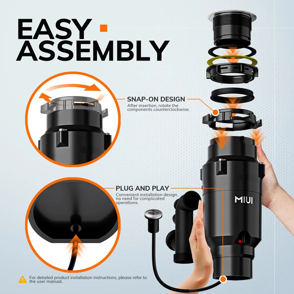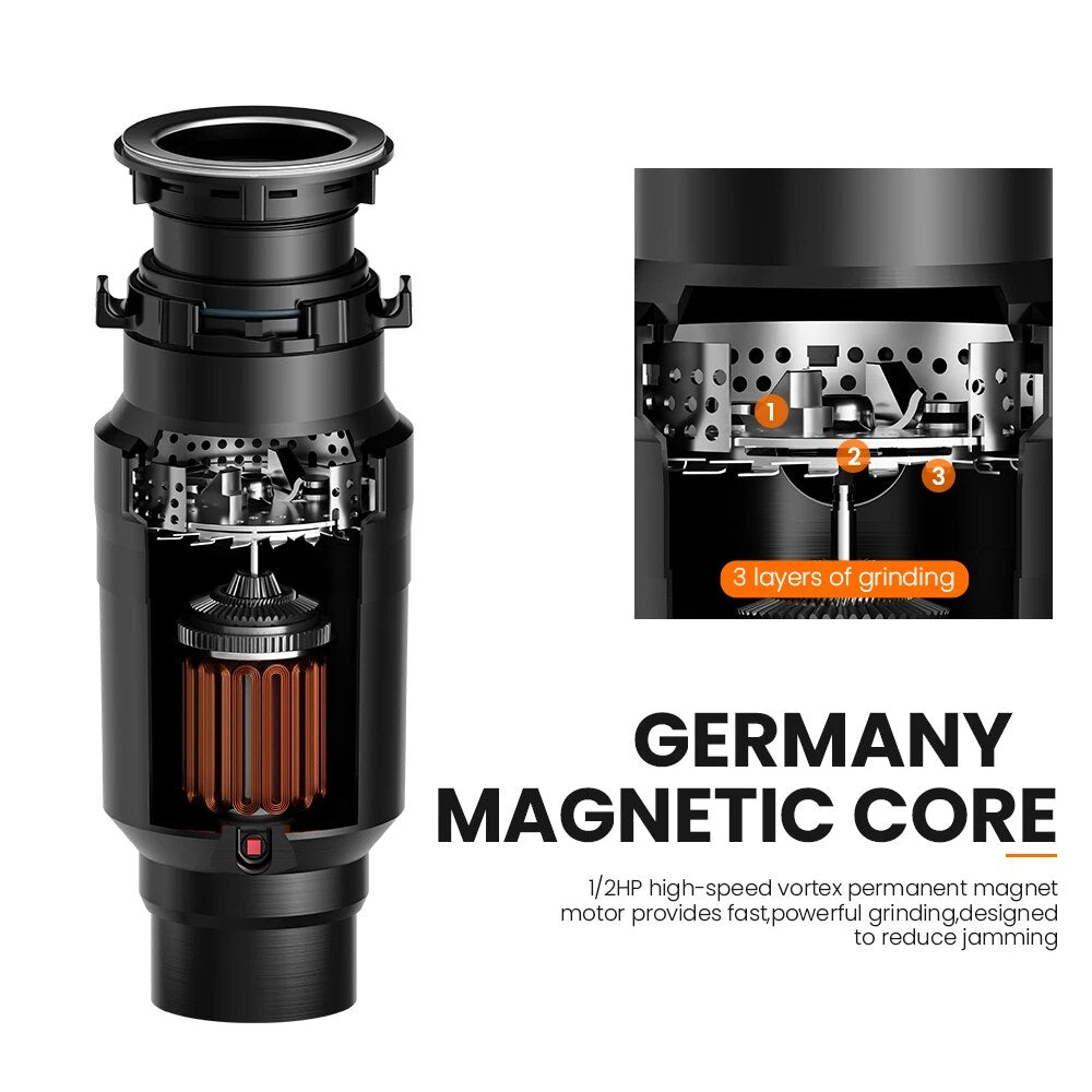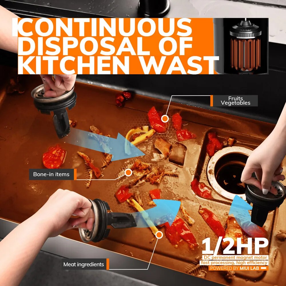 • Triple-Layer Deep Grinding: Ensures thorough breakdown of food scraps, preventing pipe blockages.