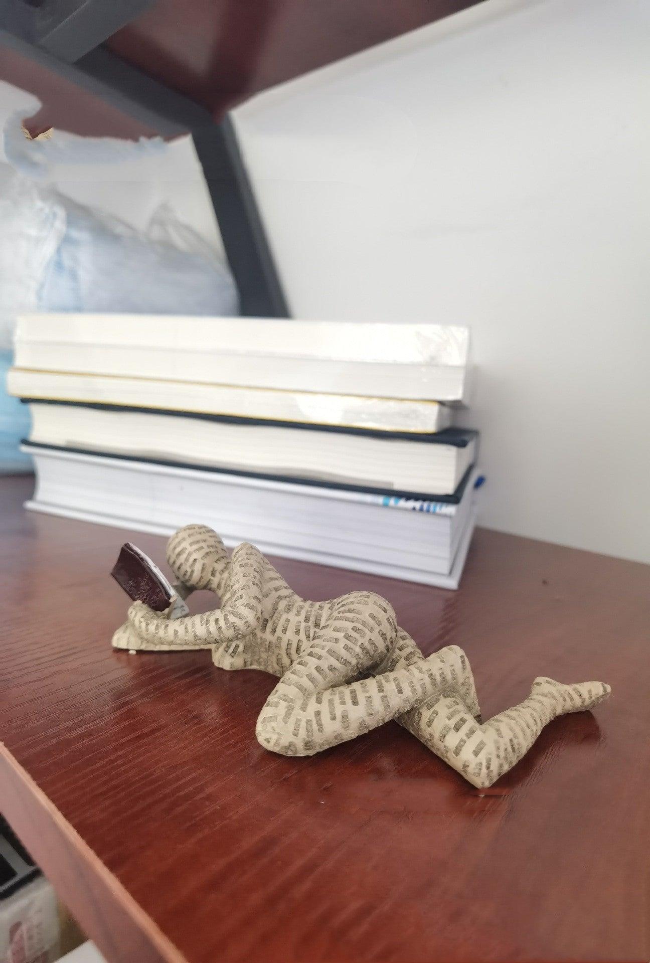 【She has a relaxed pose】: Sitting there leisurely and reading a book. A perfect gift for a book lover. The purpose here was to make a delicate gift. Something special to someone that loves art and reading. She can sit on a bookshelf.