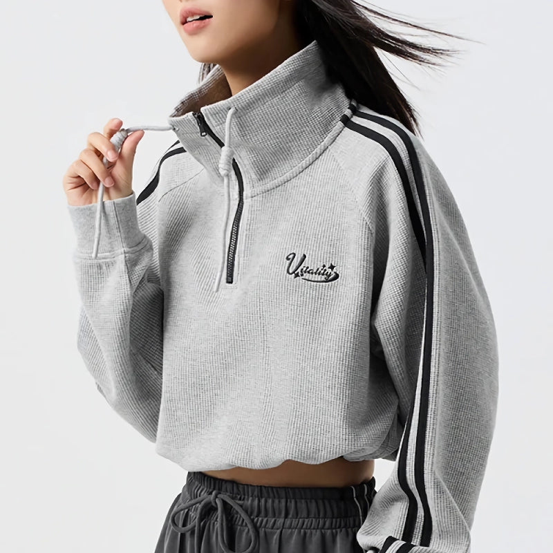The Waffle Knit Gray Raglan Sleeve Sweatshirt stands out with its unique waffle knit texture and raglan sleeves, providing a contemporary twist on a classic design. The addition of a drawstring and letter pattern adds a touch of sporty flair, making it a must-have for those who love a blend of athletic and casual styles. Its slight stretch and standard thickness ensure a comfortable fit that moves with you, making it ideal for everyday wear.