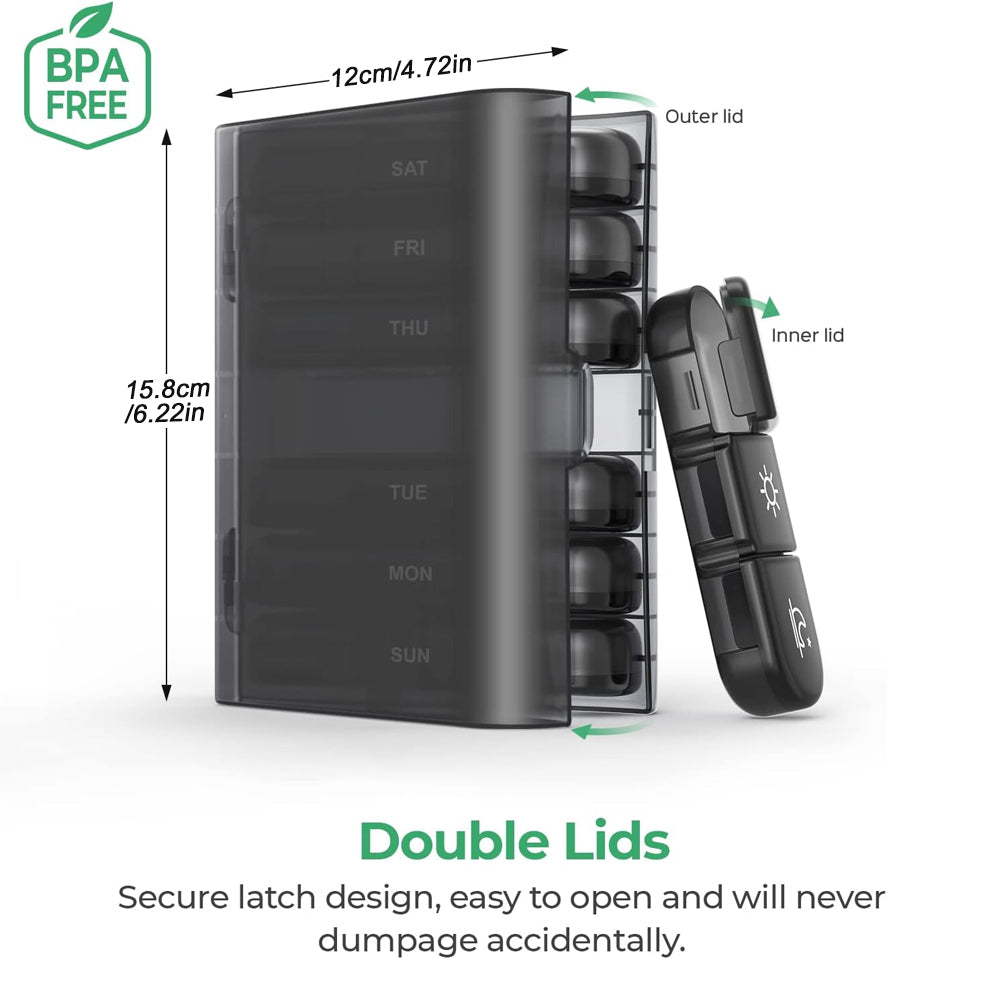 • BPA-Free Material: Made from food-grade, BPA-free materials, this pill organizer is non-toxic and safe for daily use.