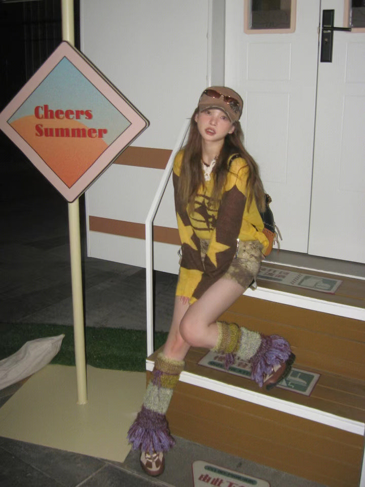 Women's American-style Retro Five-pointed Star Loose Long-sleeved Sweater