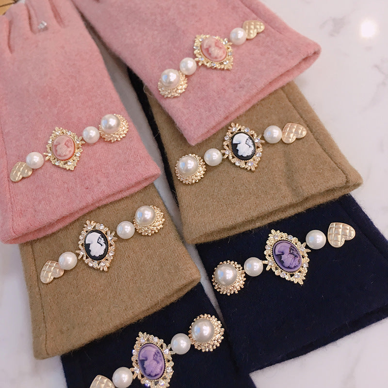 Women's Antique Portrait Pearl Gloves