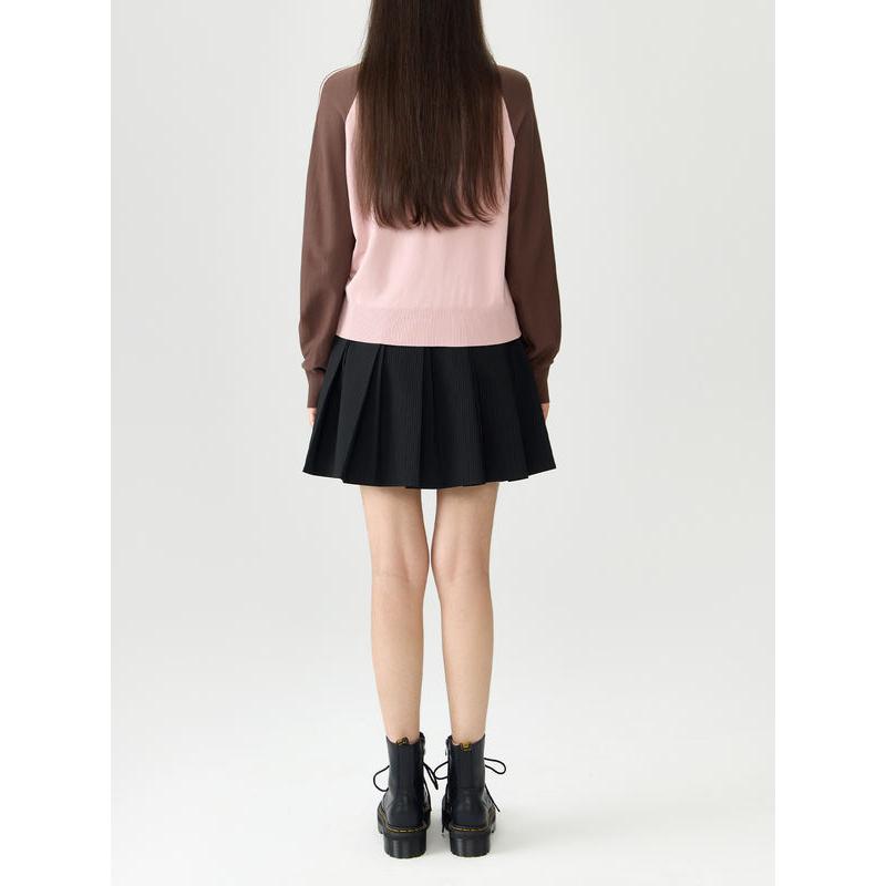 Women's Casual Round Neck Contrast Color Raglan Sleeves Sweater