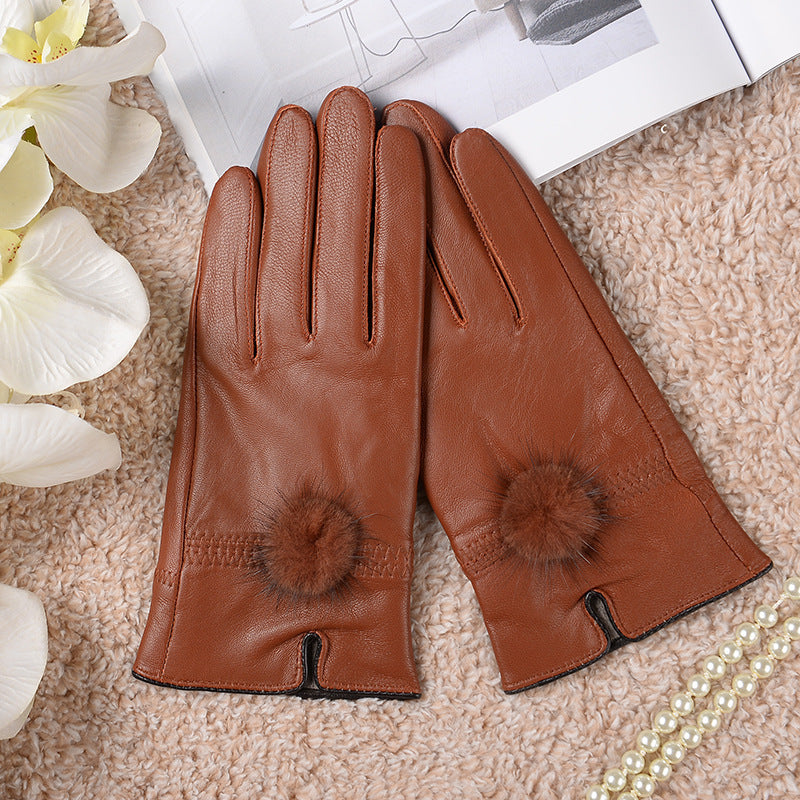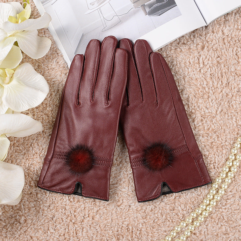 Women's Cute Warm Colored Sheepskin Gloves