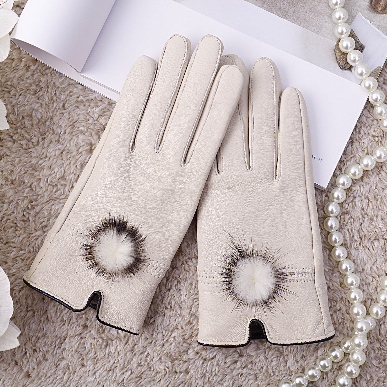 Material: sheepskin leather, mink