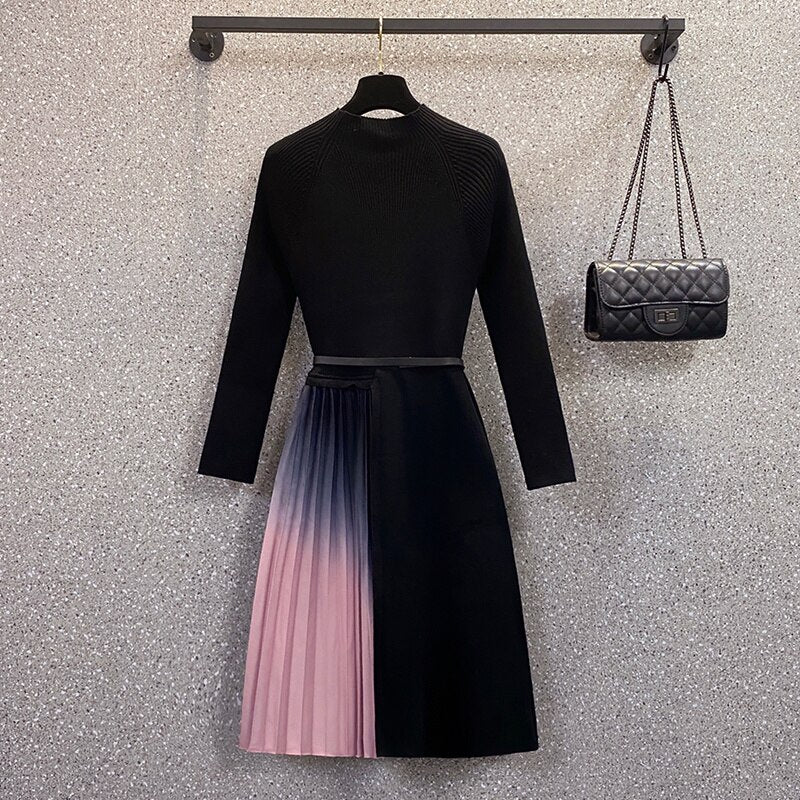 Women's Gradient Color Pleated Dress