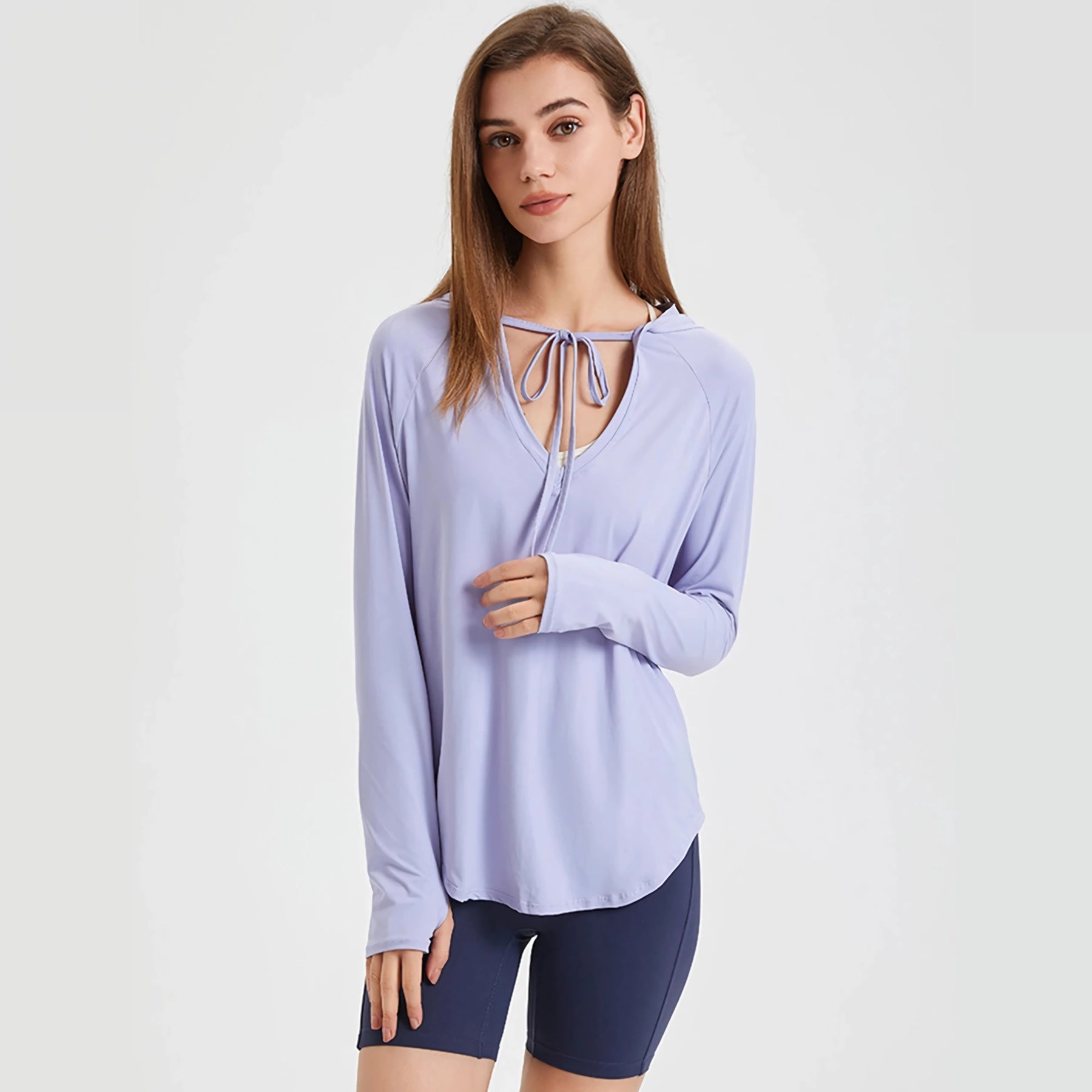 Women's Long Sleeve UV Protection Yoga Hoodie - Lightweight, Breathable Workout Top